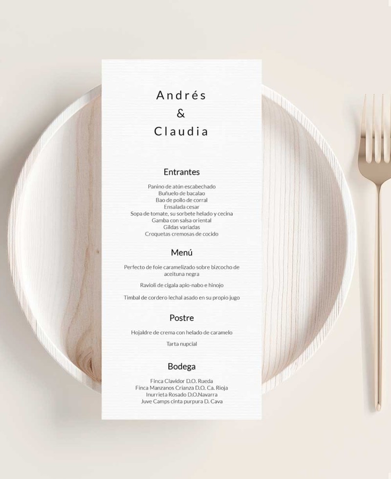 Do you want your guests to keep your wedding menus as a special keepsake? Our customizable wedding menus, accompanied by your names and the date of the wedding, will make you make a difference. Place them on plates or table linen for an incredible effect. Combine them with the rest of the stationery in the collection to achieve an event with style and elegance. Get the day you've always dreamed of!