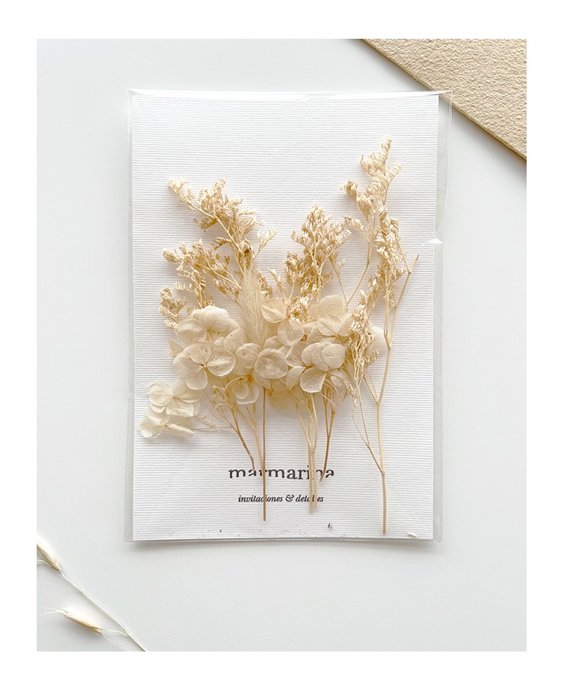 You can achieve a delicate and original natural finish in your stationery by sealing the sealing wax on top of the flowers or making a bow with our silk ribbons and introducing the bouquet in between. Combine this pack with our handmade invitation envelopes and with the rest of the decorations to surprise your loved ones.