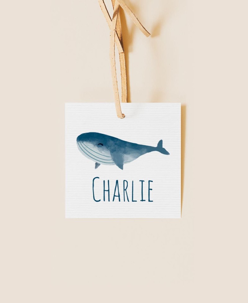 Decorative square baptism label with ocean motifs such as whales or sea plants. The perfect children's stationery for your baby's baptism celebration.