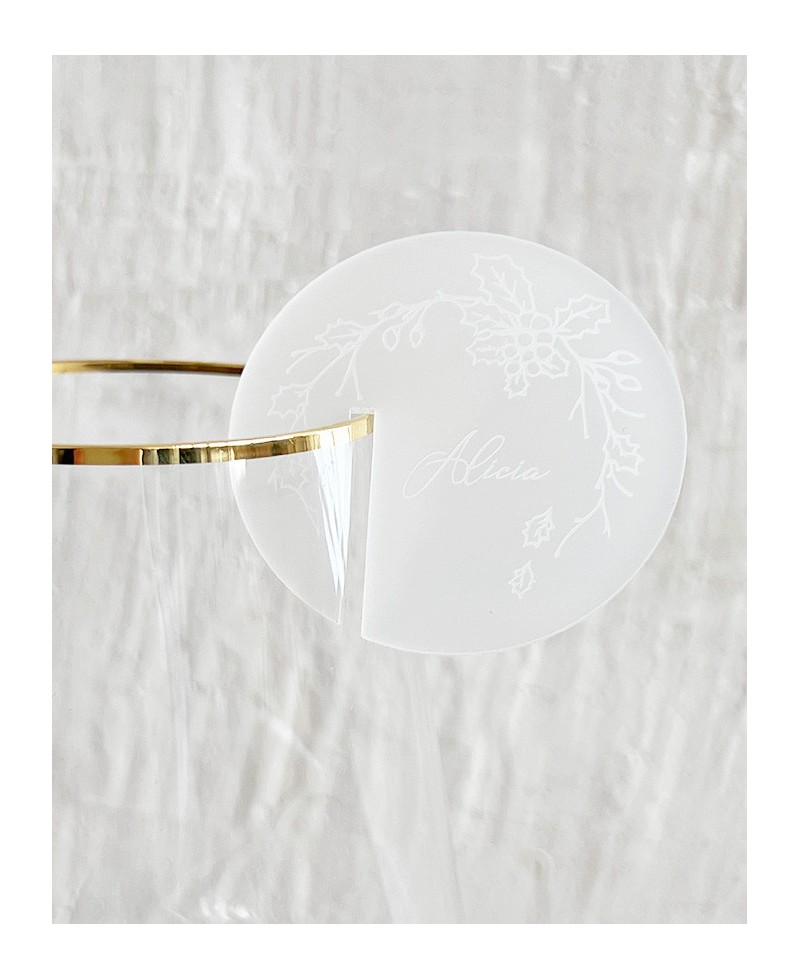 Un originale pennarello per vetro per rendere più facile per i tuoi ospiti distinguere la loro bevanda da quella degli altri. Ti aiuteranno a identificare i loro posti e organizzare i tuoi tavoli e possono fungere da segnaposto. Design elegante con una ghirlanda di agrifoglio incisa che, in combinazione con la calligrafia scritta a mano, sarà il dettaglio perfetto. Sorprenderai i tuoi ospiti con i loro nomi, essendo un modo comodo e semplice per decorare le tavole del tuo matrimonio, compleanni, feste di anniversario, pranzi ed eventi natalizi. Dai un tocco divertente ed elegante ai tuoi cocktail. Inoltre, sarà un bel souvenir che la tua famiglia e i tuoi amici potranno portare con sé.
