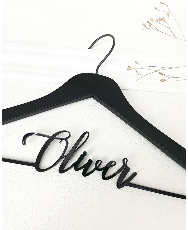 Cabide preto personalizado com o nome ou palavra de sua escolha em acrílico.