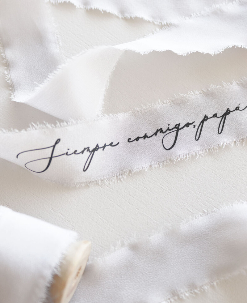 Inclui: 1 metro de fita de seda personalizada. A personalização pode ser escolhida em uma ou ambas as vertentes (máx. 35 caracteres)